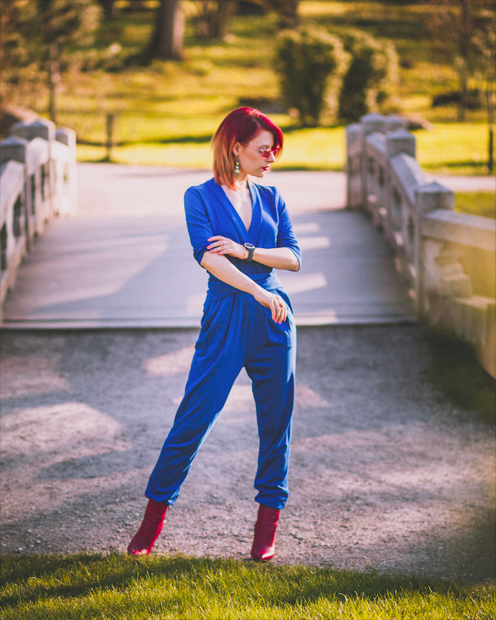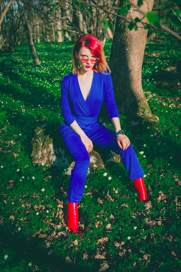 Seekordne fotoseeria sündis Kadrioru pargis, pildistas taaskord Kermo Vahula. Soovisin üles pildistada Tallinn Dollsi jumpsuit’i, mis on minu kapis olnud eelmisest suvest saadik. Kuna võtsin vahepeal kaalust tugevalt alla, siis istub ta seljas vabamalt kui kunagi varem. Jalga sikutasin Aldo täisnahast punased saapad, milled pärast esimest kandmist kohe ära rikuti ja mingit tumedat jooki peale valati. Võib-olla pole ööklubi õige koht, kuhu uute kallite saabastega minna 😉