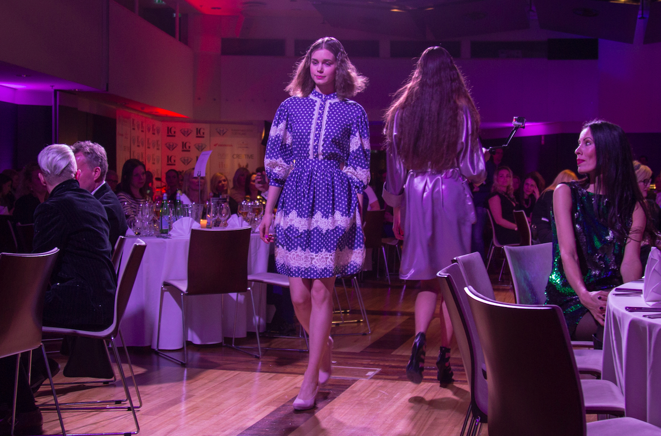 Iluguru peatoimetaja Kristiina Virt ja ajakirja vastutav väljaandja Katrin Rasmann disainer Diana Arno moeloomingus. Tänud teile vahva õhtu eest!