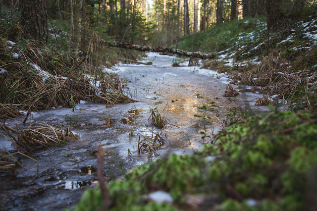 Kui mind ennast jää veel ei kandnud, siis loomakeste jälgi oli oja pind täis küll.